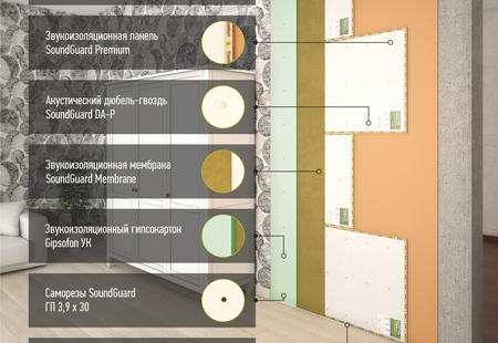 Бескаркасная система звукоизоляции стены "ПРЕМИУМ"