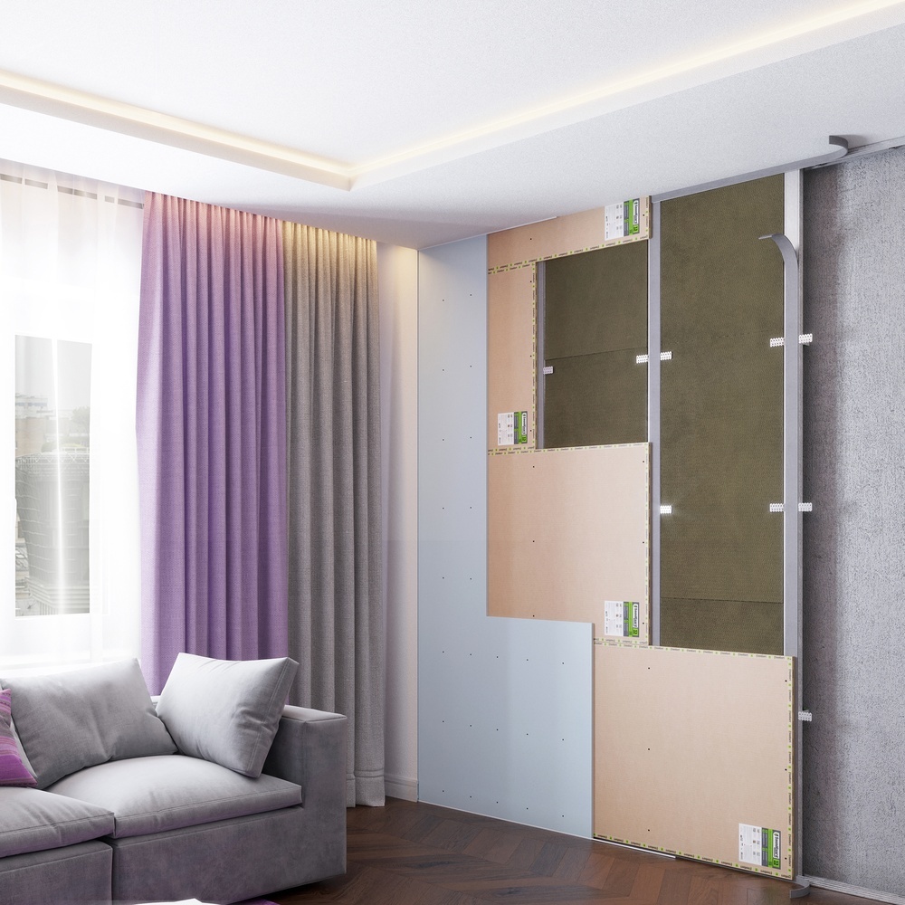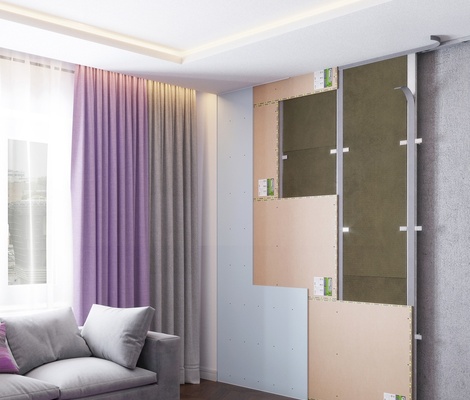 Звукоизоляционные панели SoundGuard Standart применяются как в каркасных, так и в бескаркасных системах звукоизоляции.