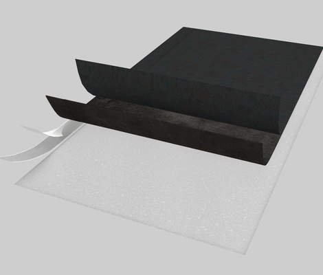 Трехслойный каучуково-полимерный рулонный материал со специальным звукоизолирующим слоем из газовспененного пенополиэтилена и защитного слоя из нетканного материала (спанбонда)