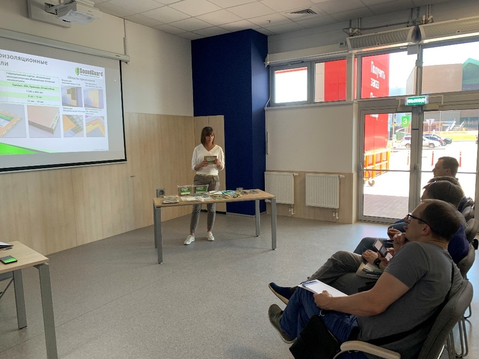 На семинаре мы познакомили коллег с материалами и системами SoundGuard, рассказали об эффективности конструкций, интенсивности шумов от разных источников и их восприятии, какие шумы бывают, как работает звукоизоляция, о системах и типах звукоизоляции SoundGuard, об их различиях, о том, как правильно подобрать систему и продукты под разные задачи клиента.